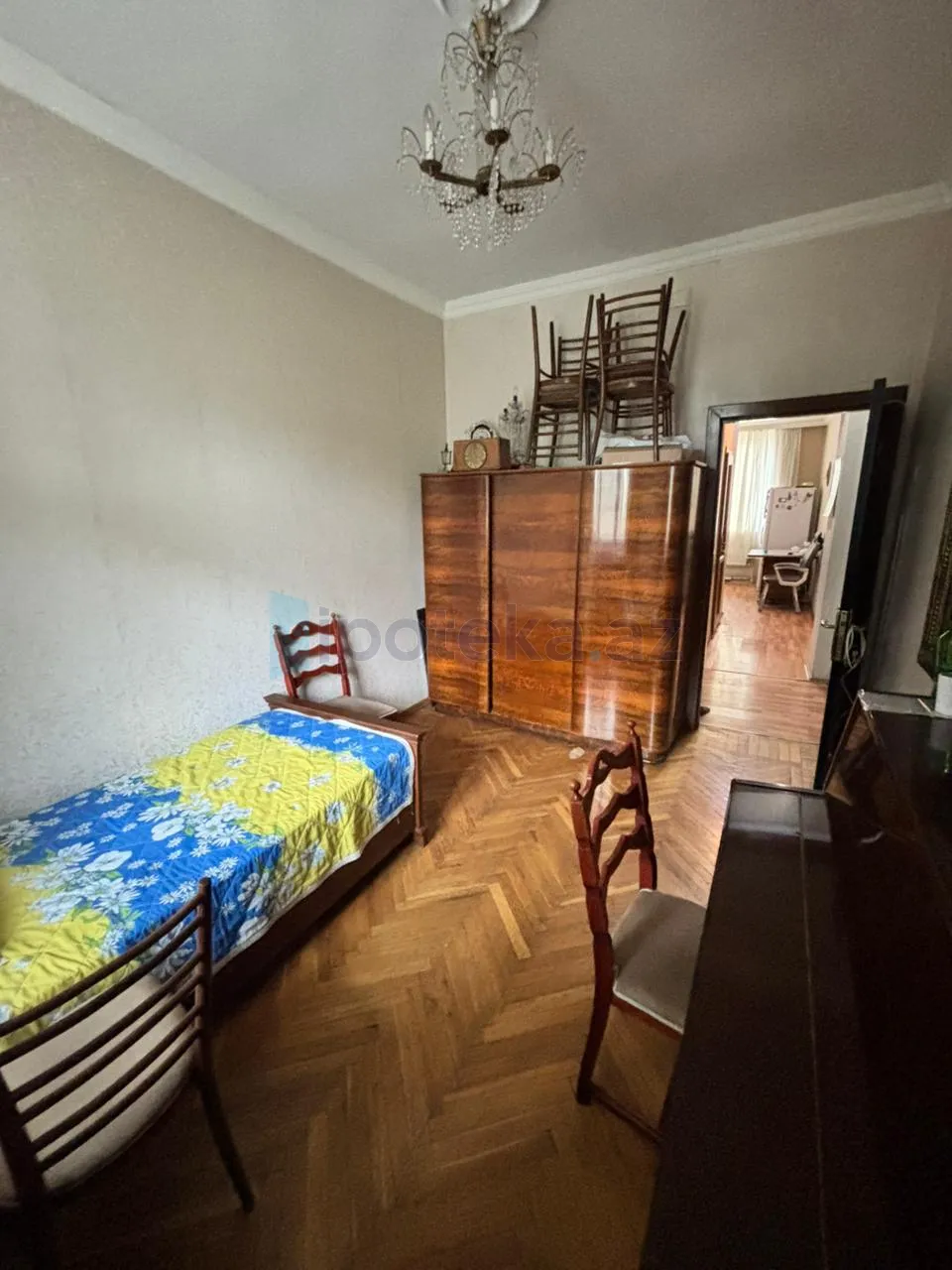 28 May metrosu yaxinligi, S. Vurgun baginin yani, D. Eliyeva kucesi, stalinka layiheli binada umumi sahesi 78 kv m olan 3 otaqli menzil satilir. Mertebe 5/2, yelceken, yaxsi temir, doseme parket, qurasdirilmis metbex mebeli, qazi, suyu, isigi daimdir, 2 eyvani. Binanin genis yasil heyeti. Butun senedler qaydasindadir CIXARISH var. Yaxinliqda usaq baxcasi, mekteb, dayanacaq, market ve diger iase xidmeti obyektleri yerlesir.