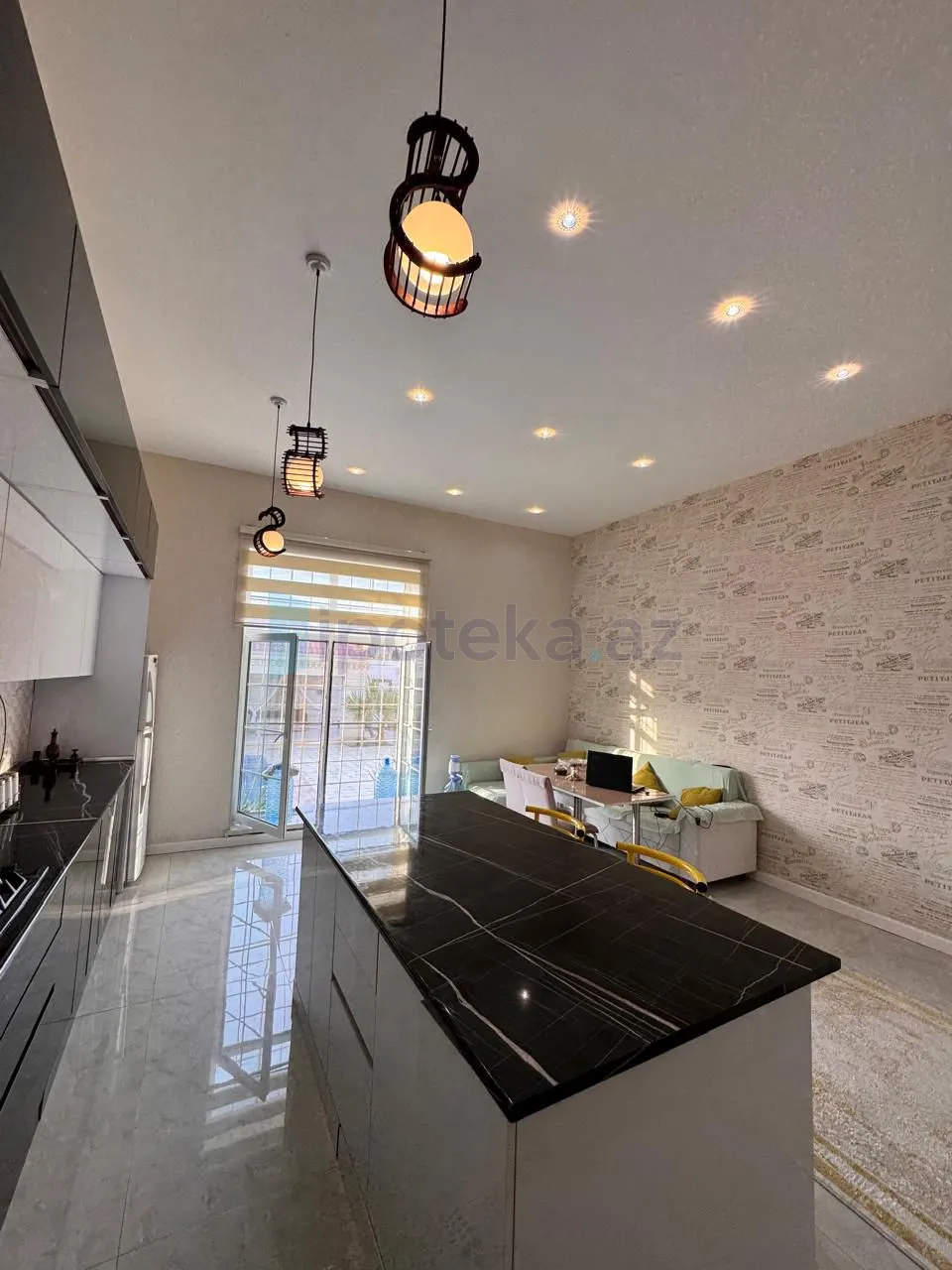 В посёлке Новханы, за Рахат маркетом, 300 метрах от трассы, продаётся частный дом общей площадью 205 кв. м, построенный на 6 сотках. Отличный ремонт, 4 комнаты, встроенная кухонная мебель, газ, вода, постоянное свет круглосуточная, отопительная система комби. Во дворе беседка, бассейн, ворота с дистанционным управлением. Все документы в порядке, имеется ЧЫХАРЫШ. Часть мебели остаётся.