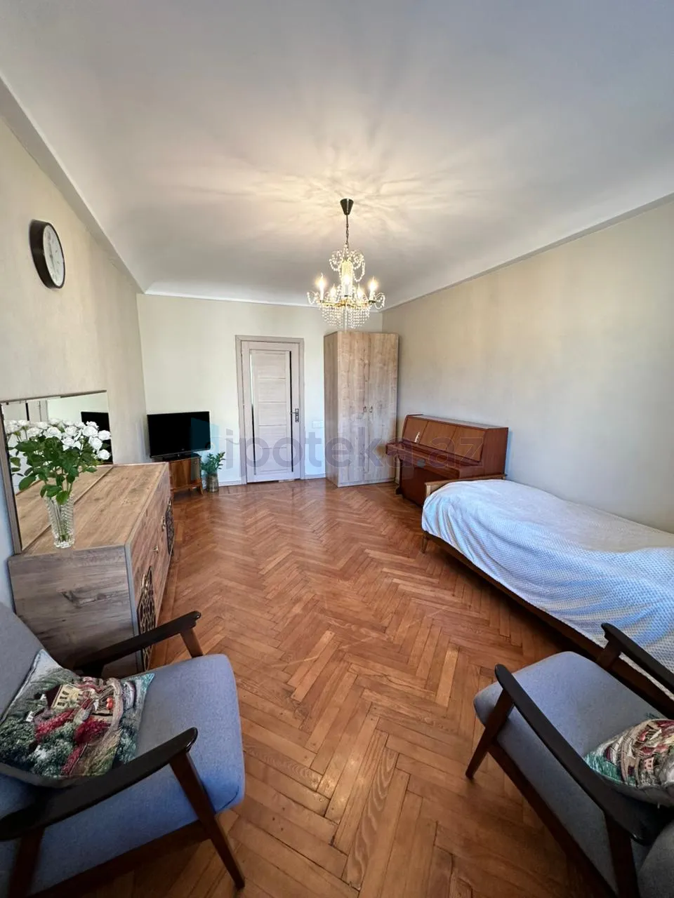 На улице Измир, в экспериментальном каменном доме, продаётся 3-комнатная квартира общей площадью 70 кв. м. Этаж 5/4, супер ремонт, комнаты раздельные - сквозные, полы паркет, встроенная кухонная мебель, санузлы раздельные, газ, вода, электричество постоянные, центральное отопление. Все документы в порядке имеется ЧЫХАРЫШ. Рядом детский сад, школа, рынок и другие объекты общественного питания.