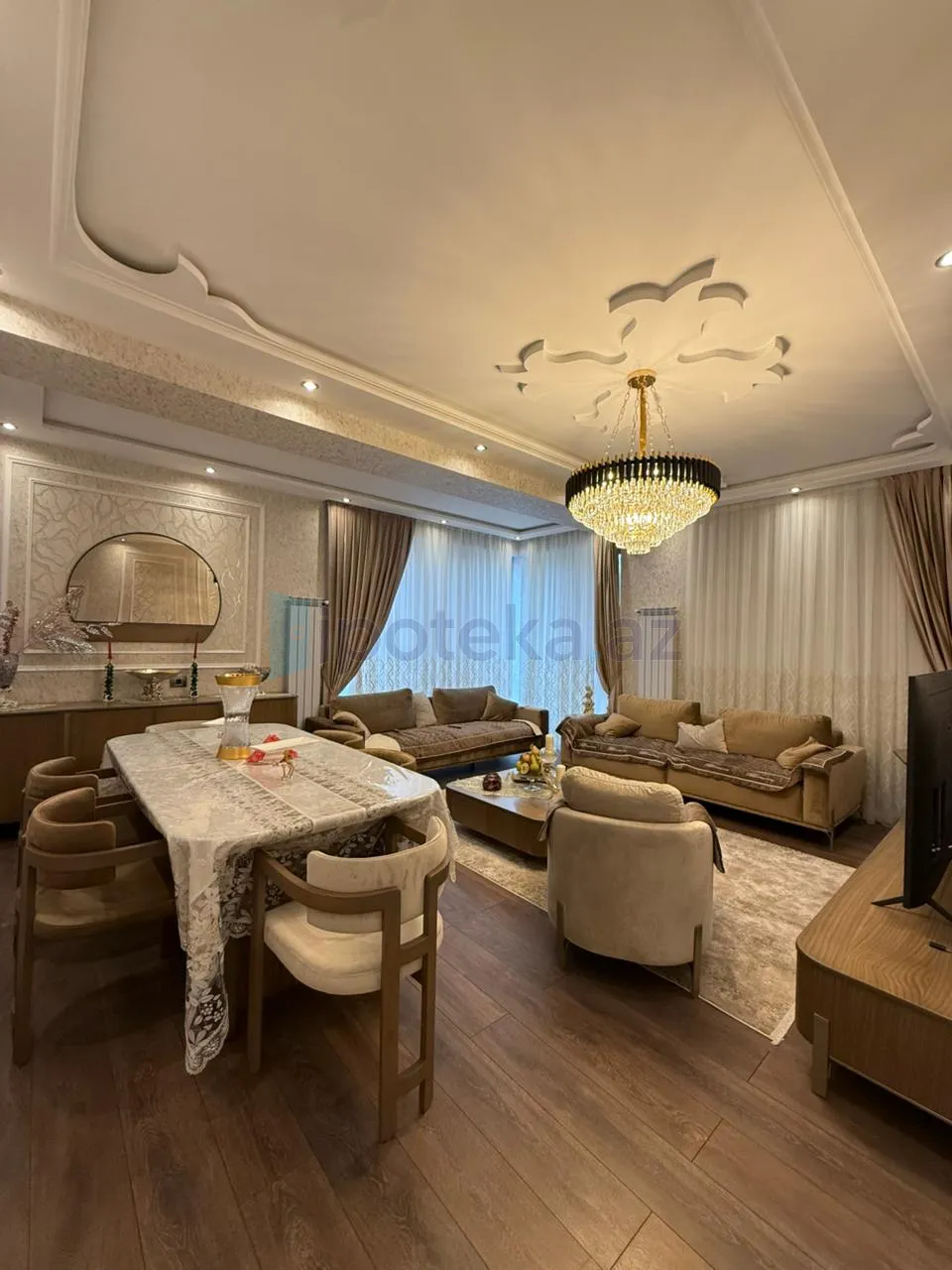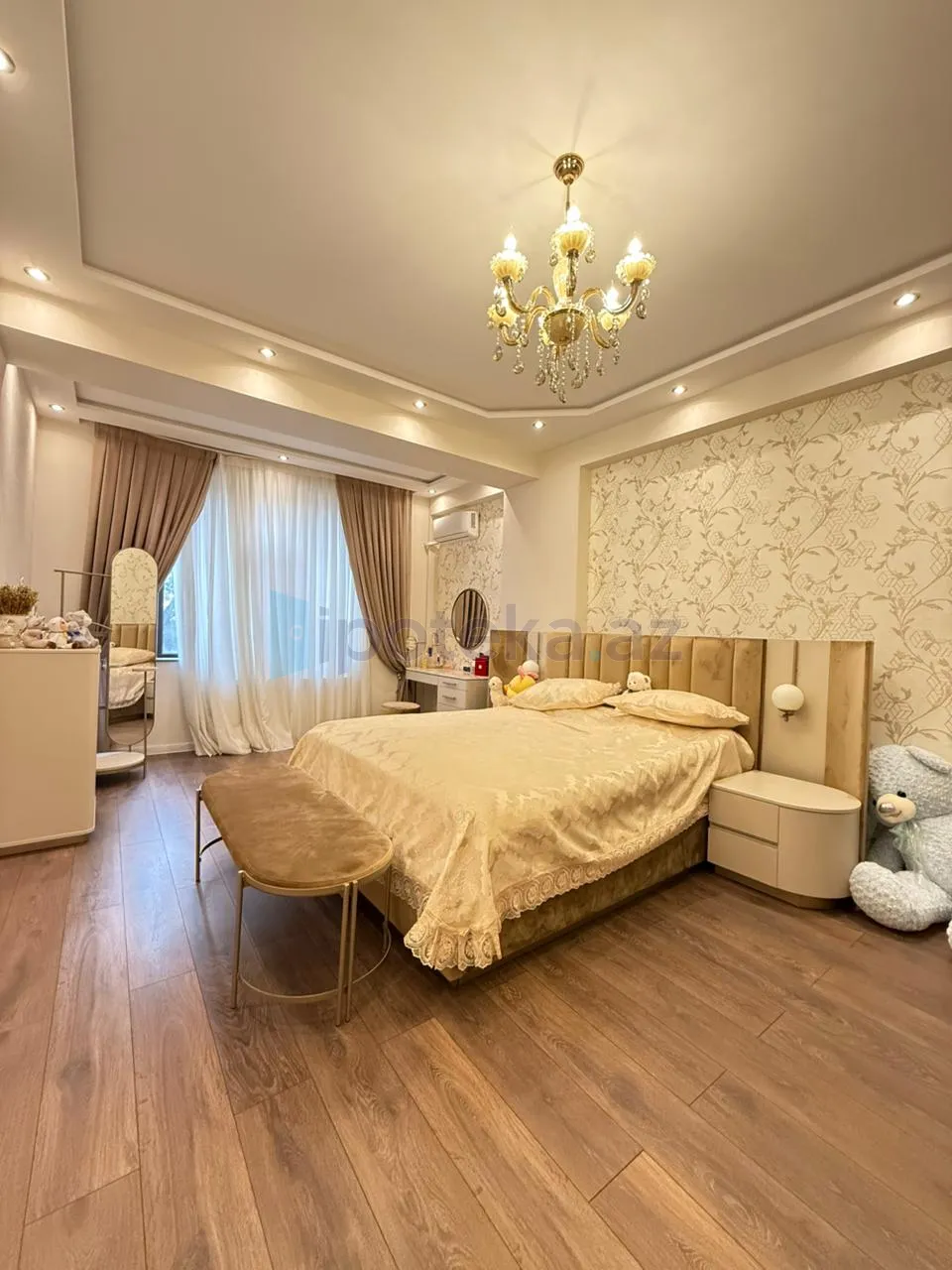 Bakı ş., Nərimanov r., Təbriz küçəsində, « LİDER » yaşayış kompleksində, Yeni Tikili 16 mərtəbəli binanın 2-ci mərtəbəsində ümumi sahəsi 140 kv/m., Qanuni 3 otaqlı, super təmirli, sənədi ÇIXARIŞ ( KUPÇA) olan Tam ƏŞYALI mənzil satılır. Əşyalar xüsusi olaraq mənzil üçün yığılıb. Mənzil yeni təmirdən çıxıb və mənzil şəxsi yaşayış üçün təmir edilmişdir. Qaz, su, işıq daimidir. İstilik sistemi Kombidir və istipol ilə təchiz olunub. Mənzil yelçəkəndir. Mənzildə ayrıca çamaşırxanada mövcuddur. Mənzilin təmiri bahalı və keyfiyyətli materiallardan dizayner tərəfindən bütün incəliklər düşünülərək edilmişdir. Mənzil Xarici Dillər Universitetinin, Gənclik m/s yaxınlığındadır. Bina ərazinin ən yaxşı binalarından hesab olunur. Binanın 7/24 canlı və kamera müşahidəsi ilə muhafizəsi sizin təhlükəsizliyinizə ünvanlanmışdır.