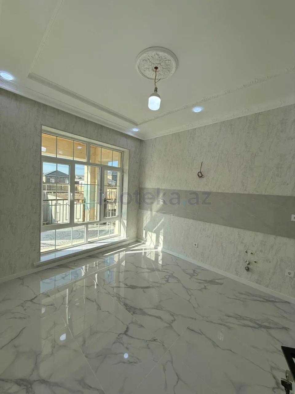 Birinci mərtəbə monalit beton, fasad aqlay işlənib, mətbəxdən terasa çıxış avr