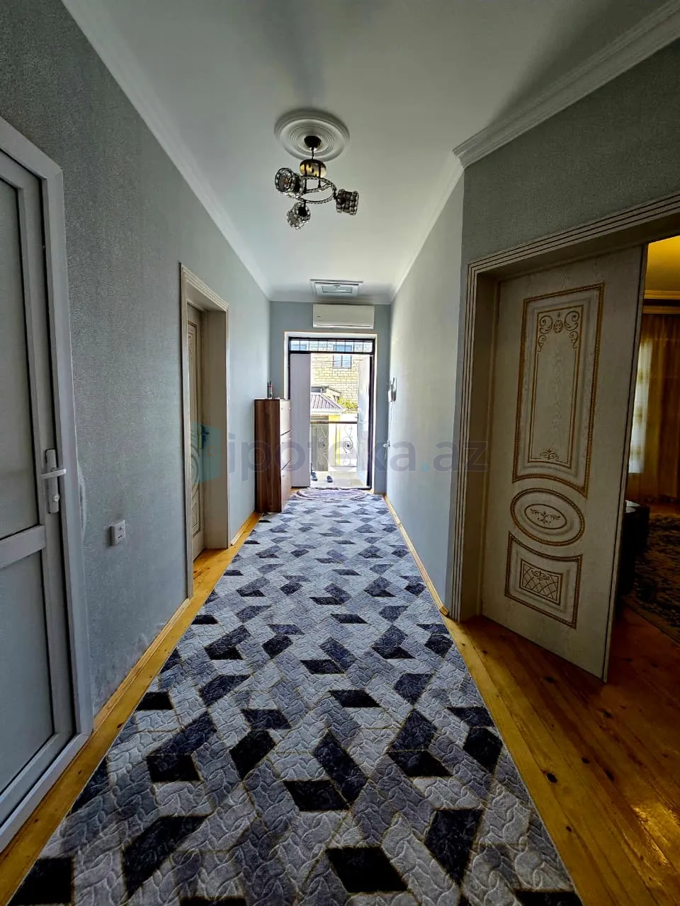 Бина, в близи главной дороге, на 2,5 сотках продаётся частный дом обшей площадью 120 кв м.. Хороший ремонт, 3 комнаты, встроенная кухонная мебель, газ, свет, вода круглосуточная, отопительная система комби, интернет, есть подвал с ремонтом. Во дворе беседка, асфальтированная дорога, автобус проходить рядом. Документы баладия.