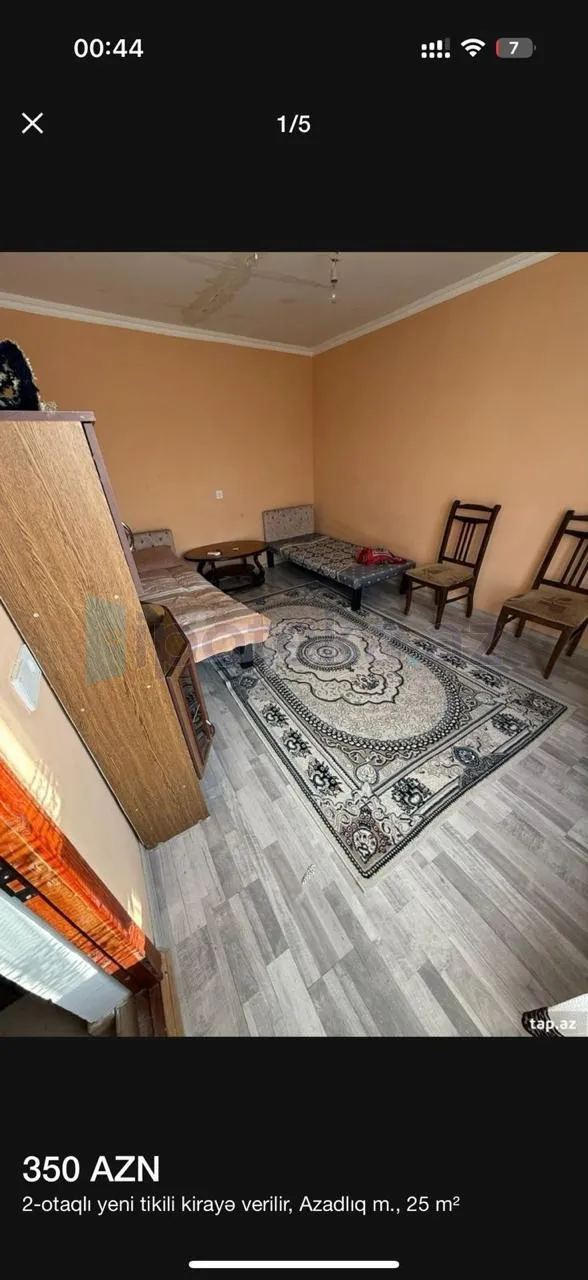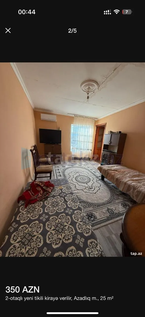 Binəqədi rayonu Aydınbəyov küçəsi Azadlıq metrostansiyasına yaxın Köhnə tikili 2 mərtəbəli Fərdi yaşayış evinin 1-ci mərtəbəsində yerləşən sahəsi 25 kv 2 otaqlı kondisioner istilik sistemi olan tam əşyalı əla təmirli bütün şəraiti mənzil ailəyə uzunmüddətli kirayə verilir.Ofis haqqı 30 faiz təşkil edir.