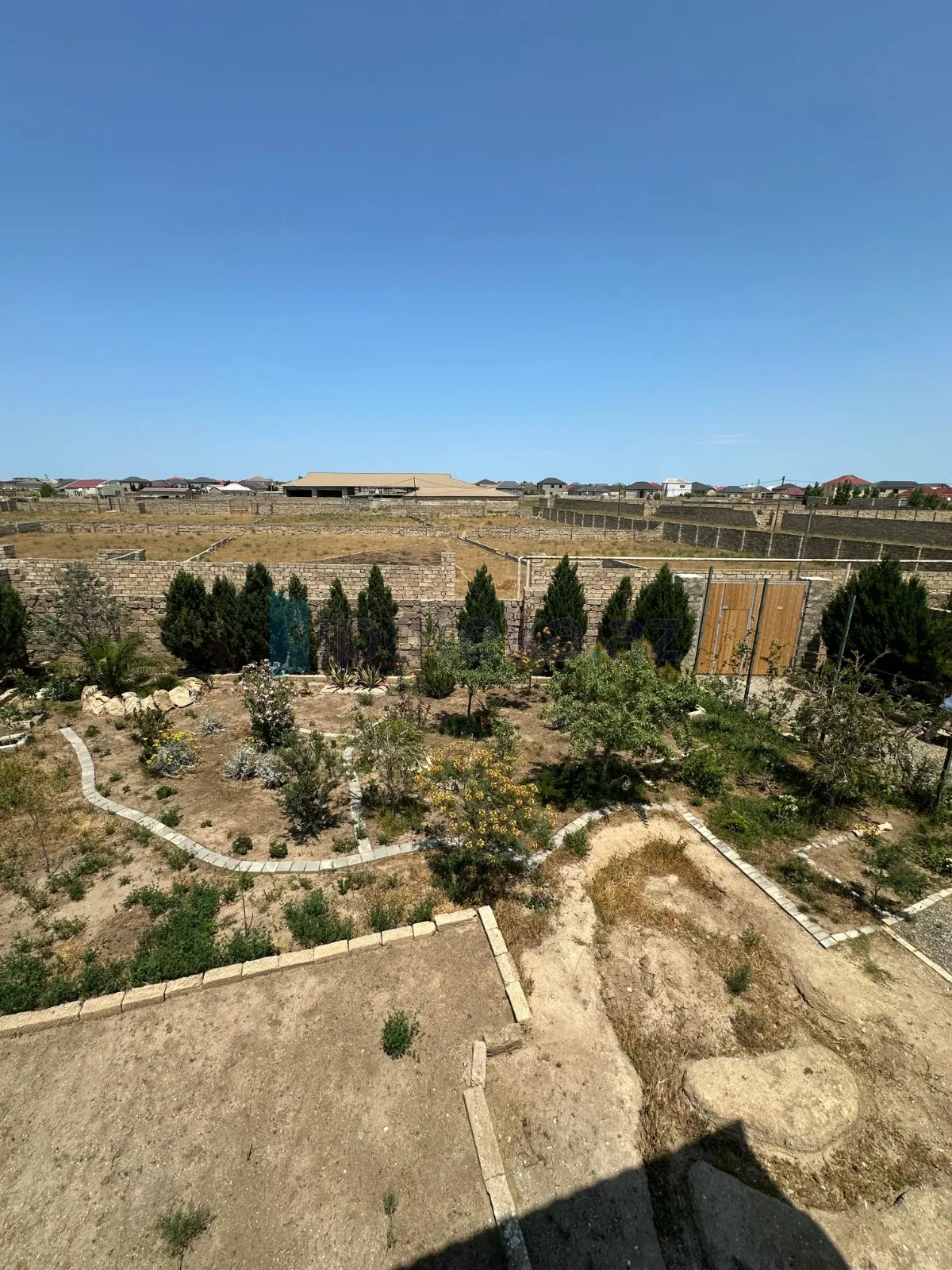 Həyətdə bahalı dekorativ ağacları, su quyusu da var.