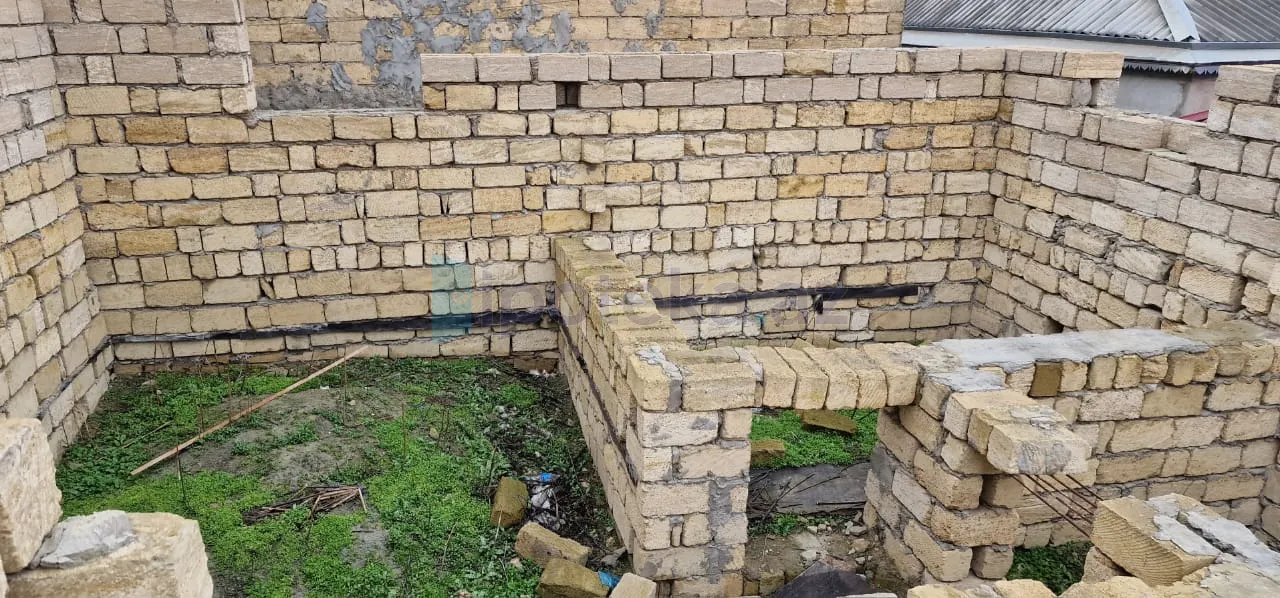 Həyətdə ev tikintisi üçün hörgü hörülüb