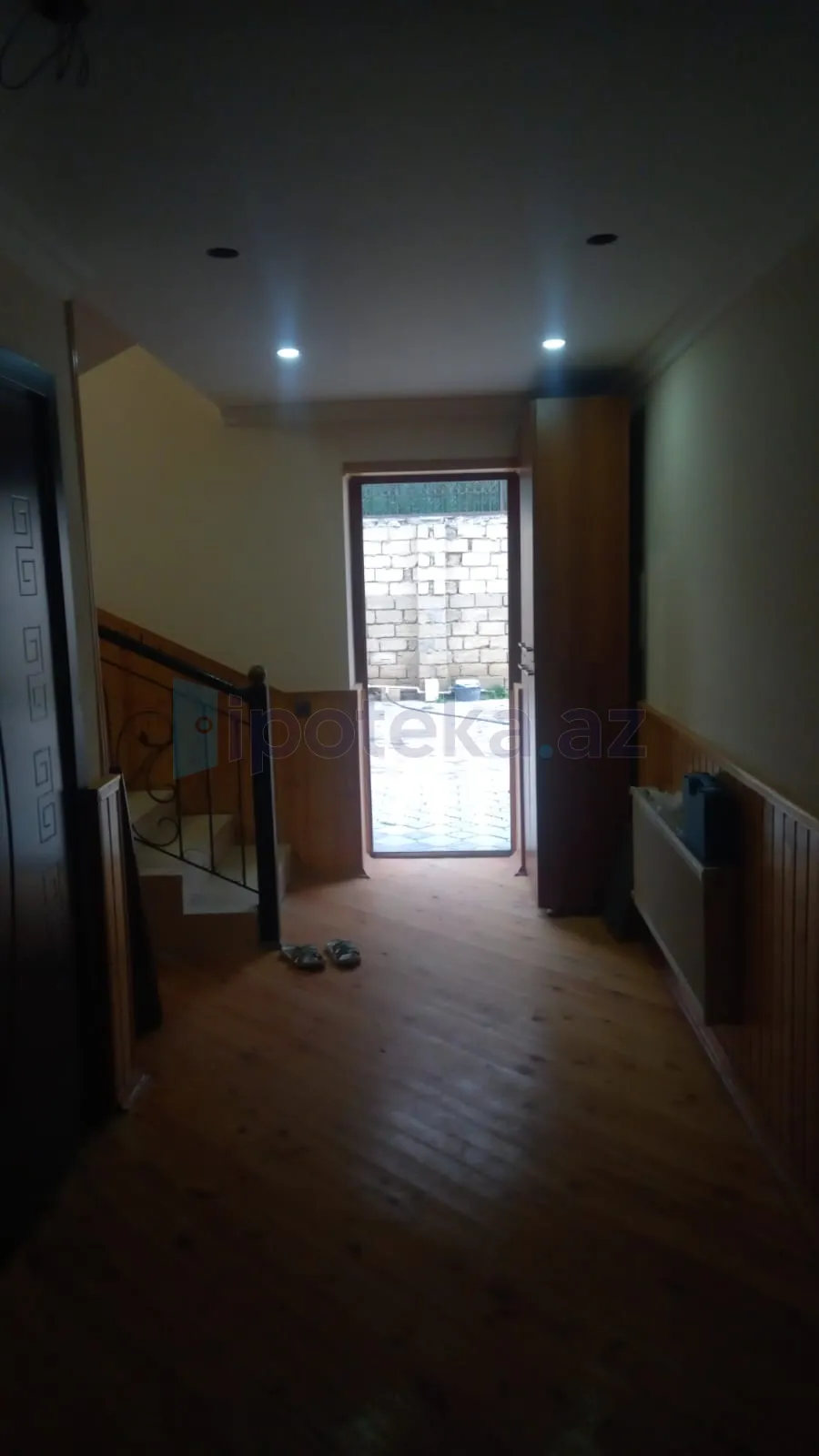 Abşeron rayonu Mehdiabad qəsəbəsində əsas yoldan 150 metr məsafədə 4 sot torpaq sahəsində inşa olunan 3 mərtəbəli həyət evi satılır.Ev 7 otaq 3 sanitar qovşaqı 2 mətbəxt 3 sanuzel 1 qarajdan ibarətdir.Evin mərtəbələr arası beton monolitdir.Tikinti zamanı evin divarları cüt daşla hörülüb.(Güzdək daşı ilə ). Evin hər mərtəbəsində sanuzel vardır.Evdə qaz,su,işıq,istilik,sistemi çəkilib.Kanalzasiya xətti şambodur.Həyətə maşın saxlamaq üçün geniş darvaza qoyulub.Həyətdə müxtəlif meyvə ağacları əkilib.Evin ətrafı yaşayış evləridir.Evin yaxınlığında marketlər və digər iaşə obyektləri yerləşir.Ərazidən metro və qəsəbələrə marşurut gedir.Evin sənədi qaydasındadır.Torpaqın kupçası vardır.!!!