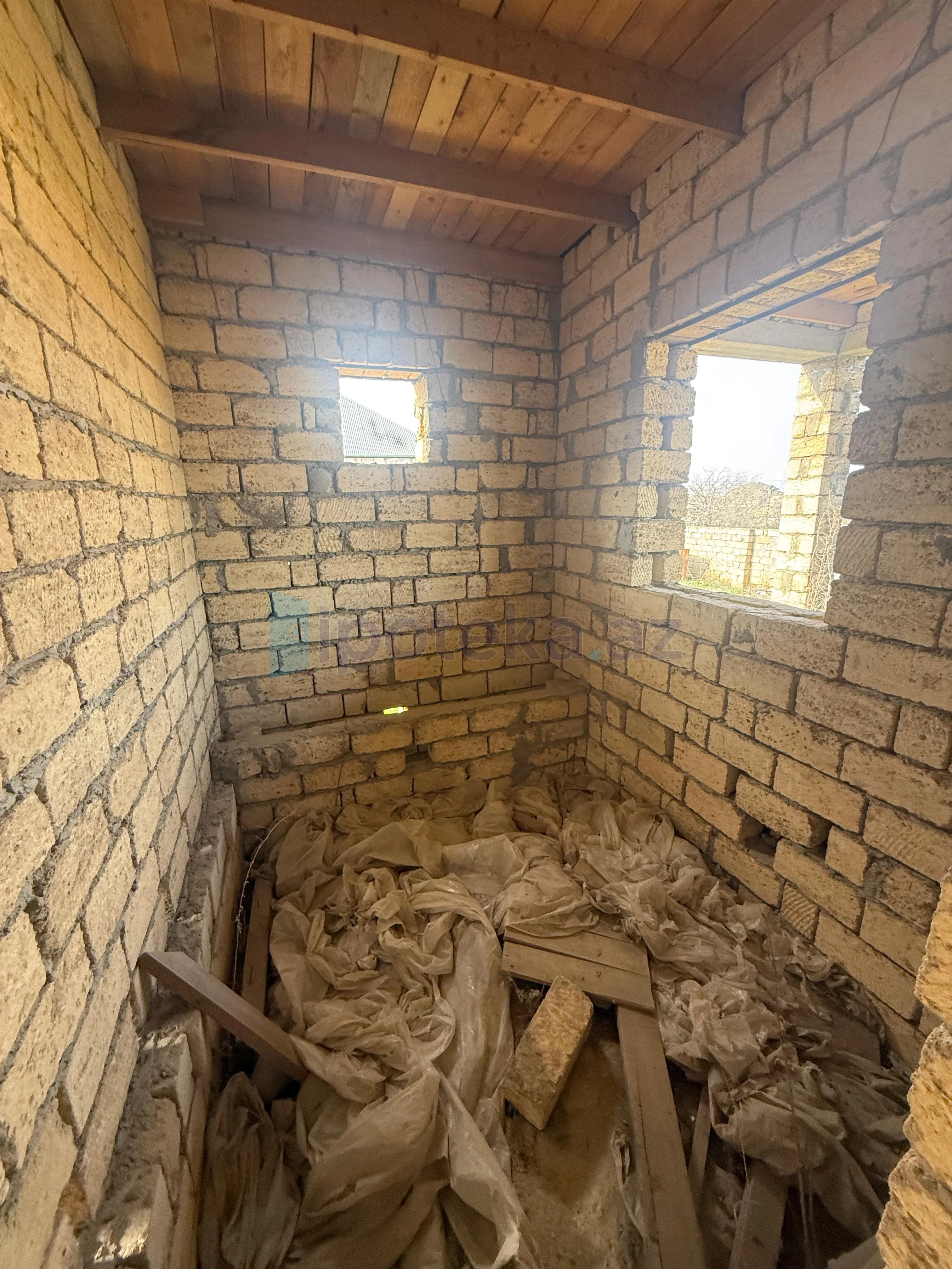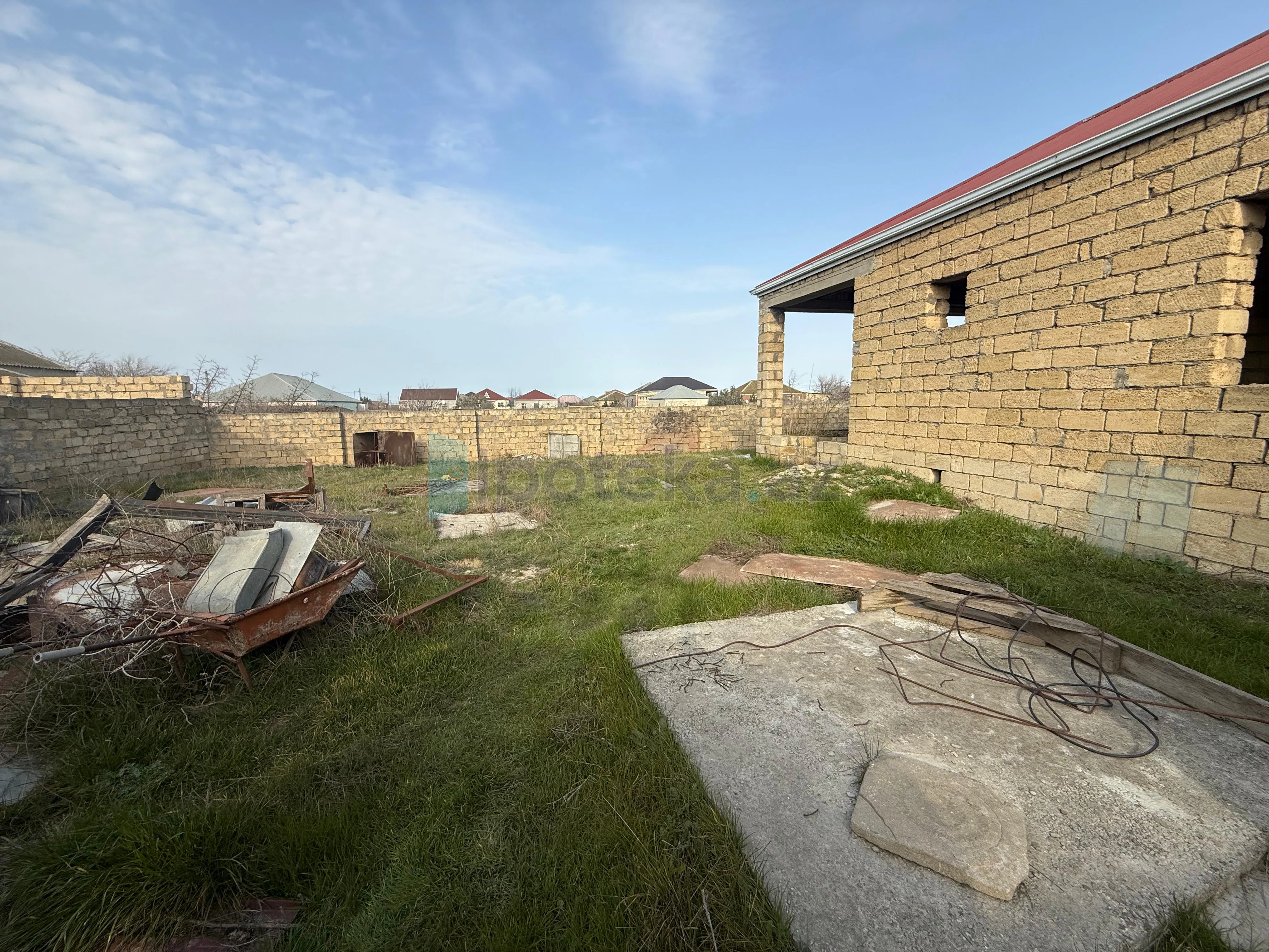 Abşeron rayonu, Məhəmmədi qəsəbəsi, Əl daşı Pirinə yaxın ərazidə, 4 Sot torpaq sahəsi üzərində inşa edilmiş, 2 otaqlı, ümumi tikili sahəsi 60 kv/m olan Natamam Təmirli Həyət Evi Satılır. Ev şəxsi tikilidir, qoşa daşla tikilib, yerdən kürsülüdür, kamunalar yoxdu. Sənəd: Bələdiyyə. Qiymət: 50.000 Azn. Real alıcıya endirim olunacaq. Kod- 0.522