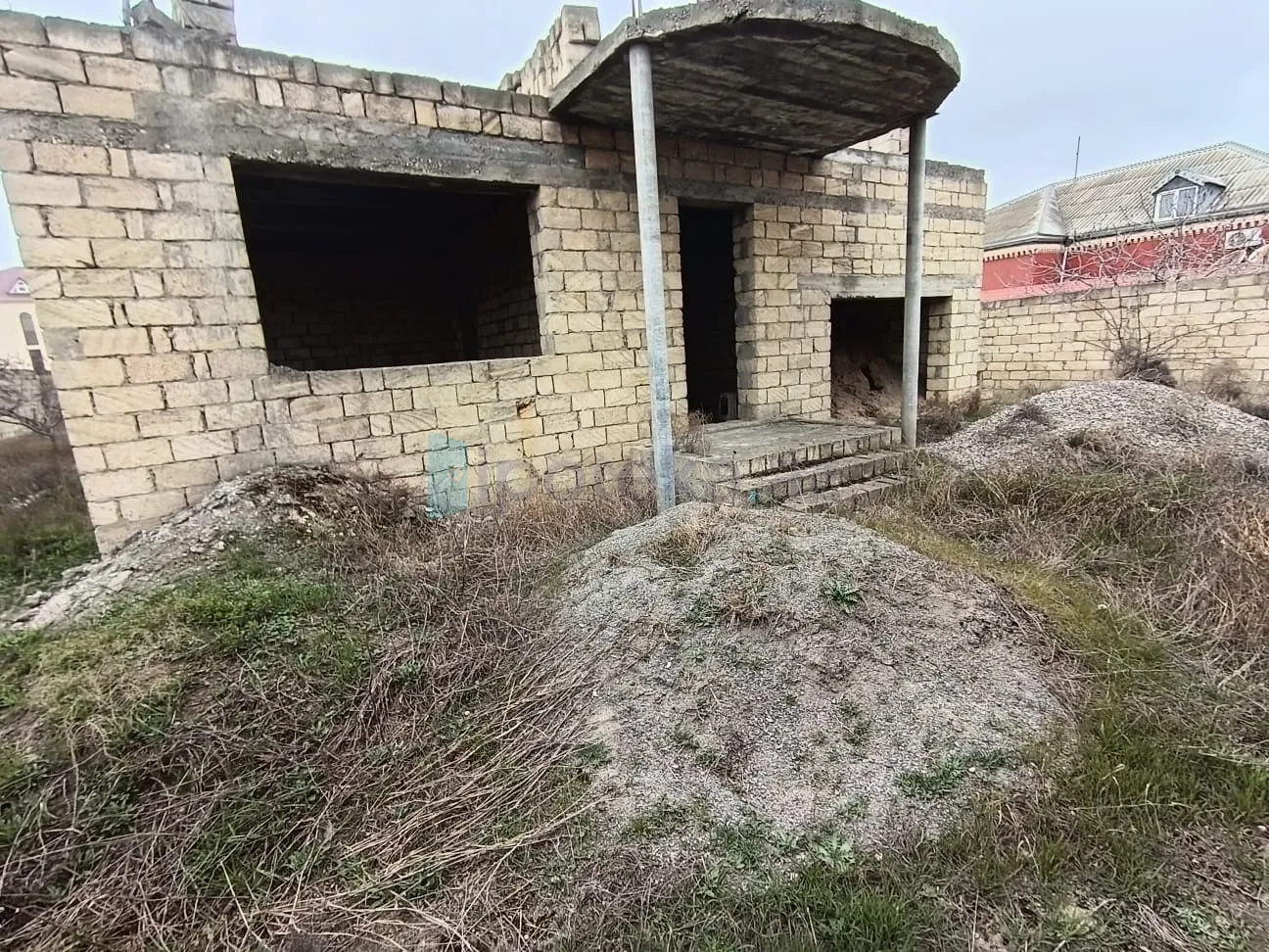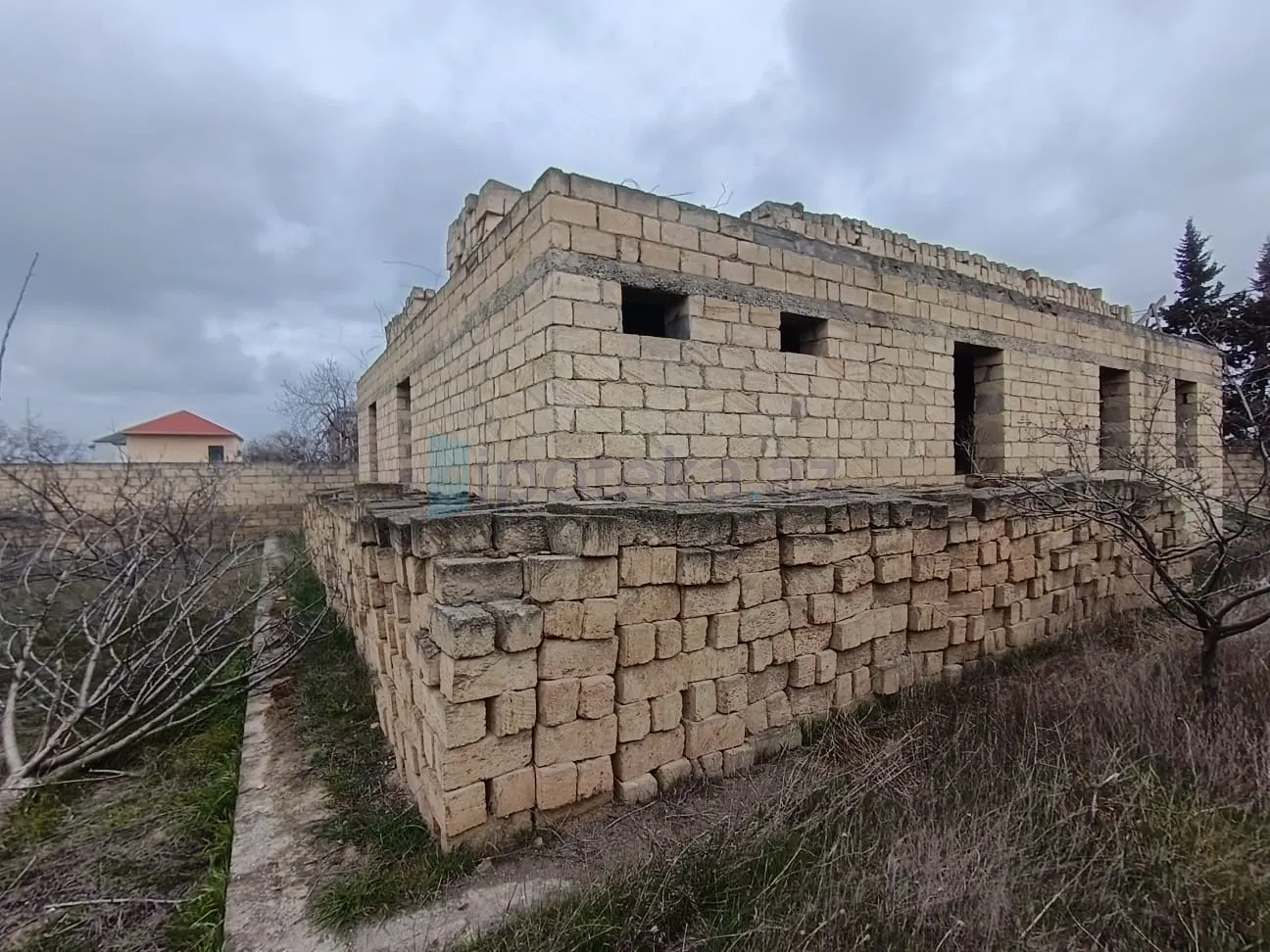 Torpaq sahəsində yarı tikili ev vardır