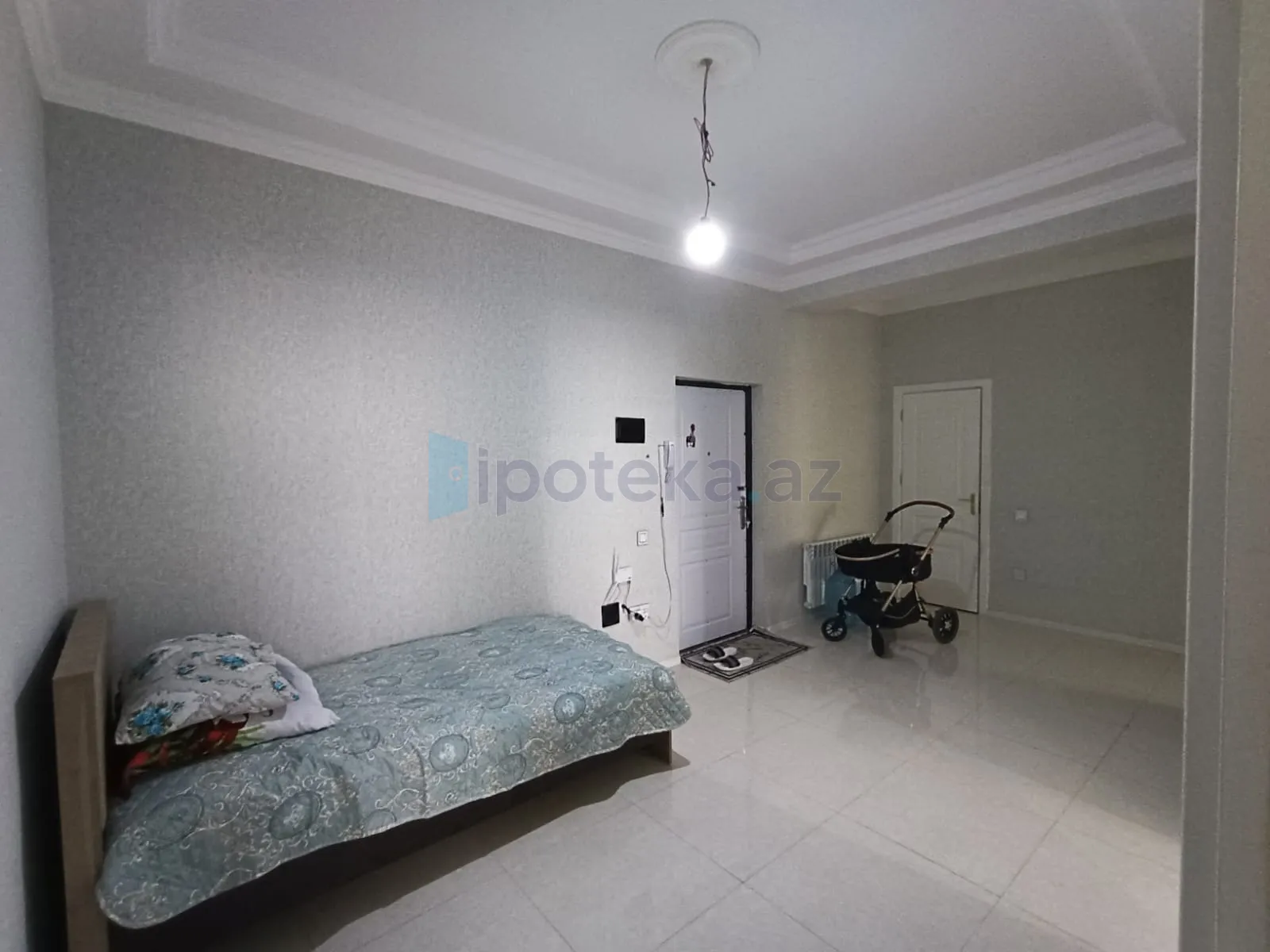 Mənzil Saray MTK-da yerləşir, bina əsas yolun tam kənarındadır. 508 nömrəli marşurutun sonuncu dayanacağı binanın qarşısıdır. Mənzilin ümumi sahəsi 88 kvadrat metrdir və yataq otağı, qonaq otağı, mətbəx, giriş hissə holl, dolab, sanitar qovşaq və balkondan ibarətdir. Otaqlar geniş və işıqlıdır. Qiymət ilkin ödənişdir. Qiymətə sanitar qovşağın aksesuarları, mətbəx mebeli, istilik sistemi avadanlıqları daxildir. istilik sistemi kombidir. Mənzil hal-hazırda 4%-li ipotekadadır (Yaşayış sahələrinin satmaq öhdəliyi ilə kirayəyə verilməsi). Müddət 21 il 5 ay qalıb. İlkin ödəniş əşyasız 48000 AZN, aylıq 642.75 AZN. Tam əşyalı almaq istəyən olarsa əlavə qiymətlə razılaşmaq olar.