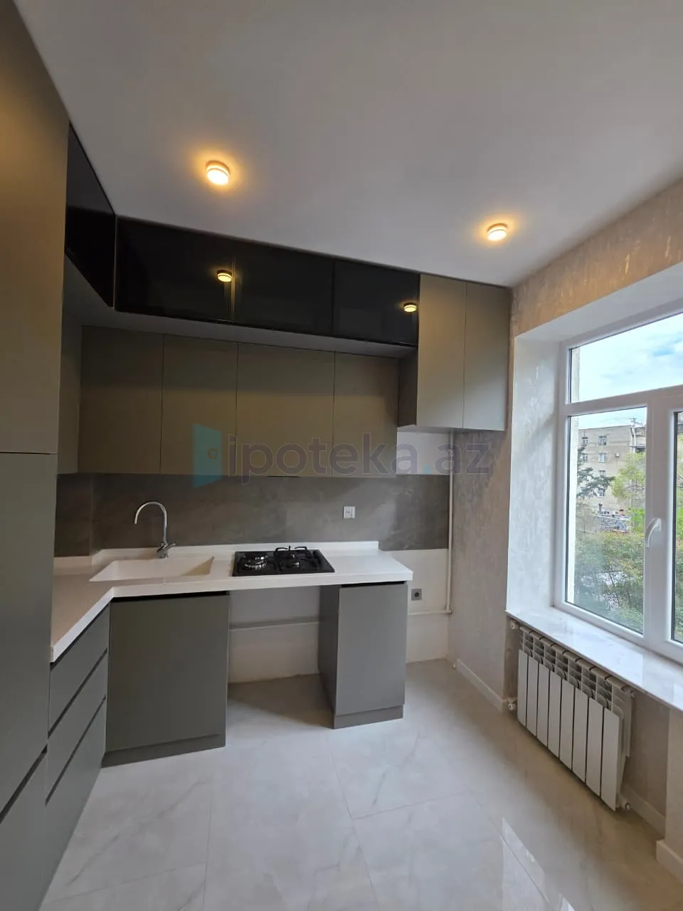 Sabunçu rayonu , Bakıxanov qəsəbəsinin ən gözəl yerində , Nazim İsmayılov küçəsi , Möcüzə marketin yanında yerləşən 5 mərtəbəli “ Stalinka “ layihəli Daş binanın orta blok 4-cü mərtəbəsində , ümumi sahəsi 85 kv.m olan qanuni 3 otaqlı , əla təmirli mənzil satılır . Sənədi çıxarışdır ( kupça ) . Mənzil yeni təmirdən çıxmış , təmirdən sonra yaşayış olmamışdır . Qaz , su , İşıq daimidir . İstilik sistemi kombidir . Eyni zamanda mərkəzi istilik də mövcuddur . Mənzilin iki ədəd açıq eyvanı mövcuddur və yelçəkən ( skvoznoy ) layihədir . Mərkəzi yerdə yerləşən binanın ətrafı hər növ infrastruktur , iaşə və ticarət obyektləri ilə zəngindir .