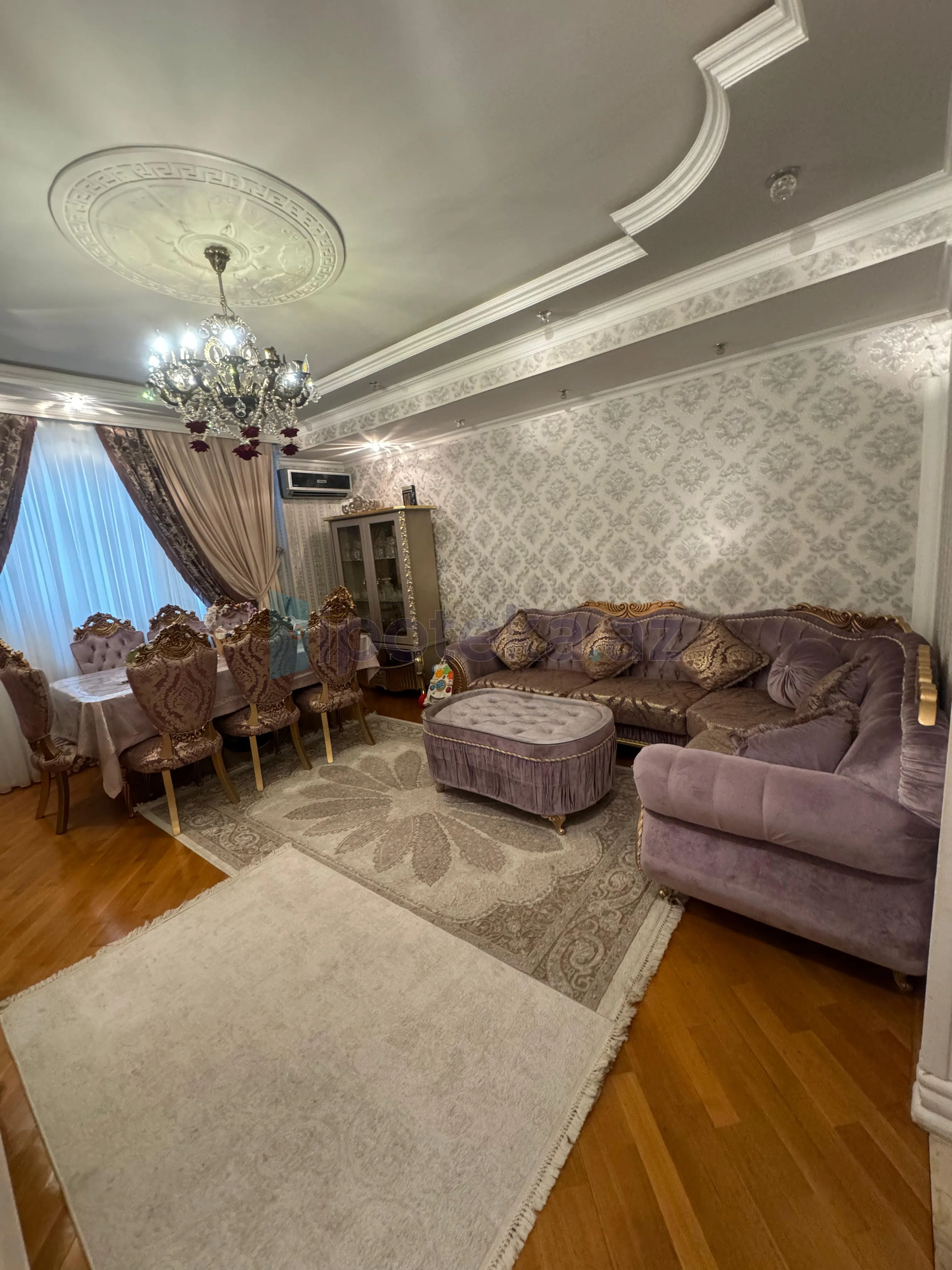 Xiyabani kucesi, “Bizim Saray” (kecmis Qismet) sadliq sarayinin yani, yeni tikili QAZLI ve CIXARISHLI binada umumi sahesi 120 kv m olan 3 otaqli menzil satilir. Mertebe 15/3, yaxsi temir, yelcekendir, doseme parket, qurasdirilmis metbex mebeli, 2 sanuzel, su, isiq daimidir, istilik sistemi kombi. Butun senedler qaydasindadir. Yaxinliqda usaq baxcasi, mekteb, dayanacaq, market ve diger iashe xidmeti obyektleri yerlesir.