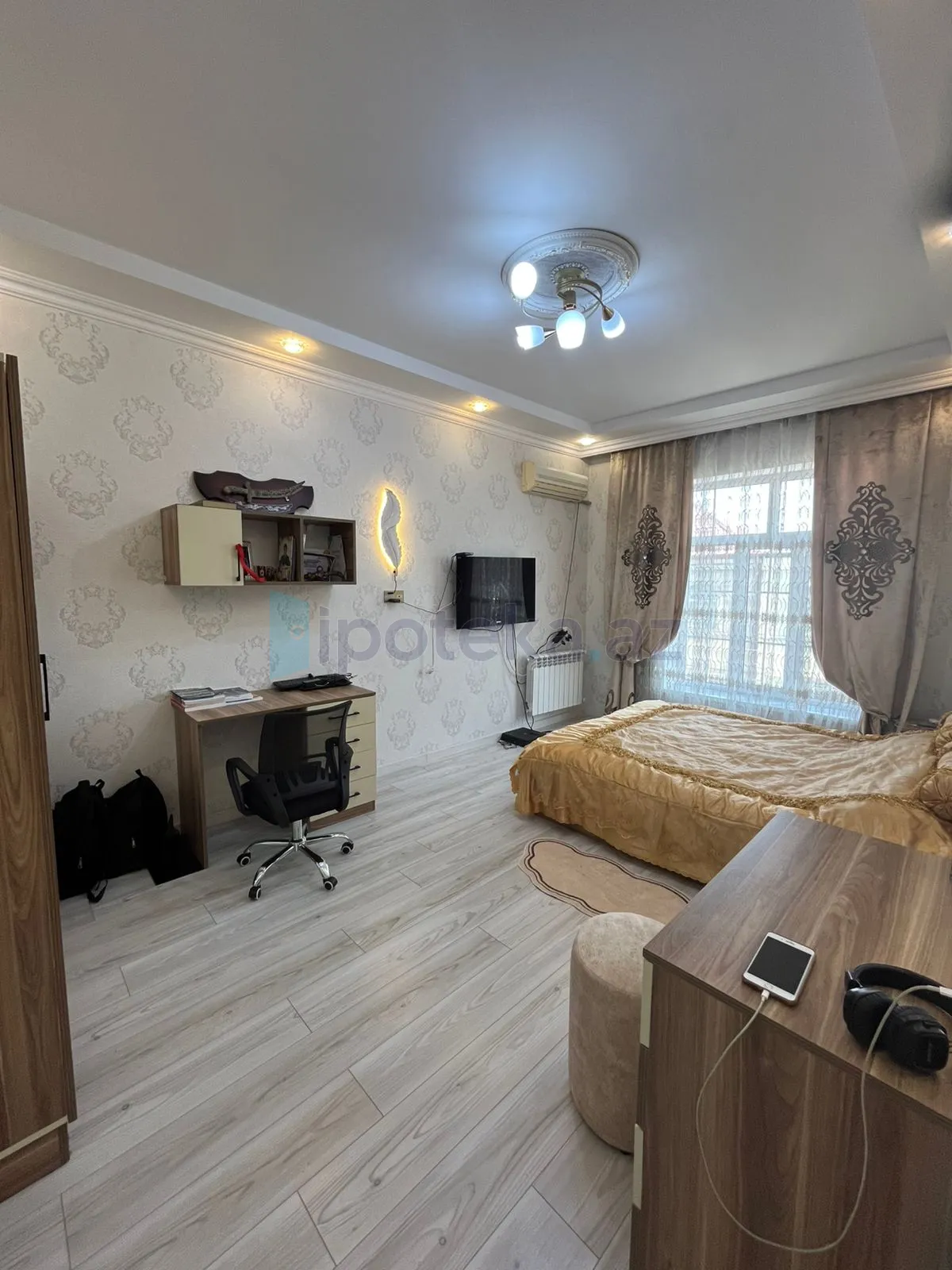 •Komunal xətlər var. Kombi sistemi, mətbəx mebeli və digər aksesurlar quraşdırılıb