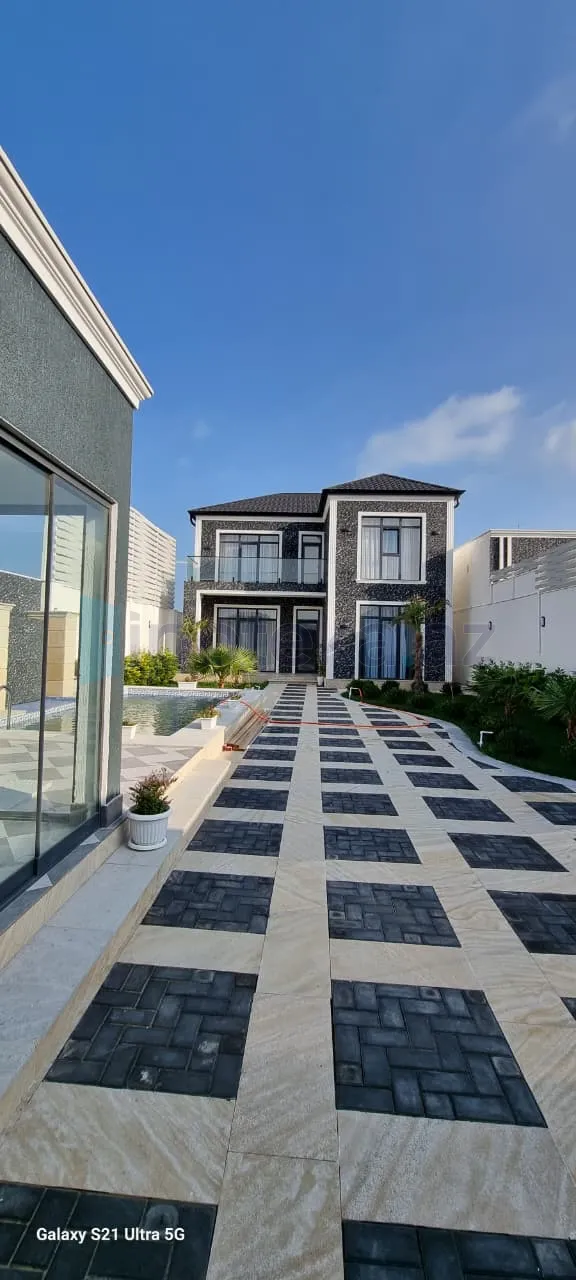 Həyətində ayrıca sanitar qovşağı , manqalnisi , yaşıl zonası , dekorativ ağacları , yay-qış mətbəxi və filtirli hovuzu vardır..