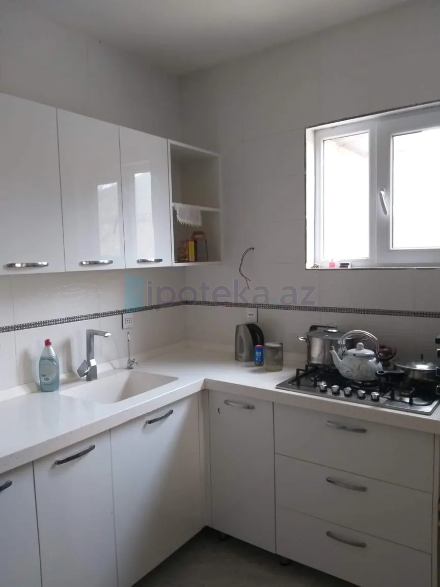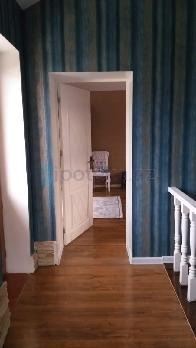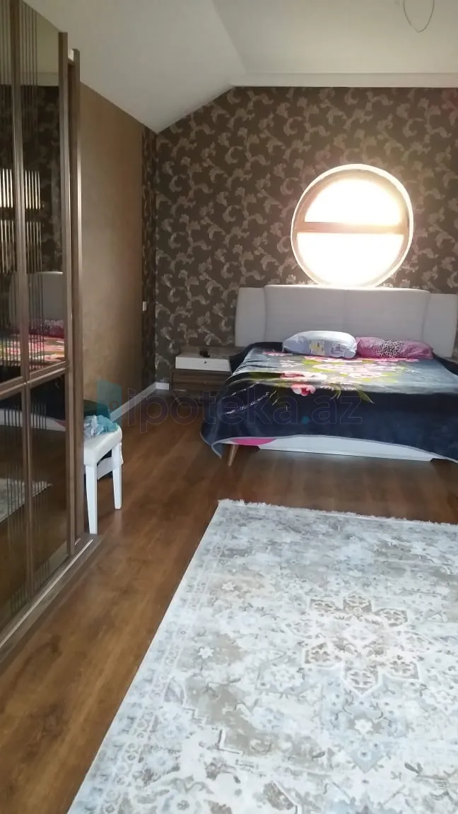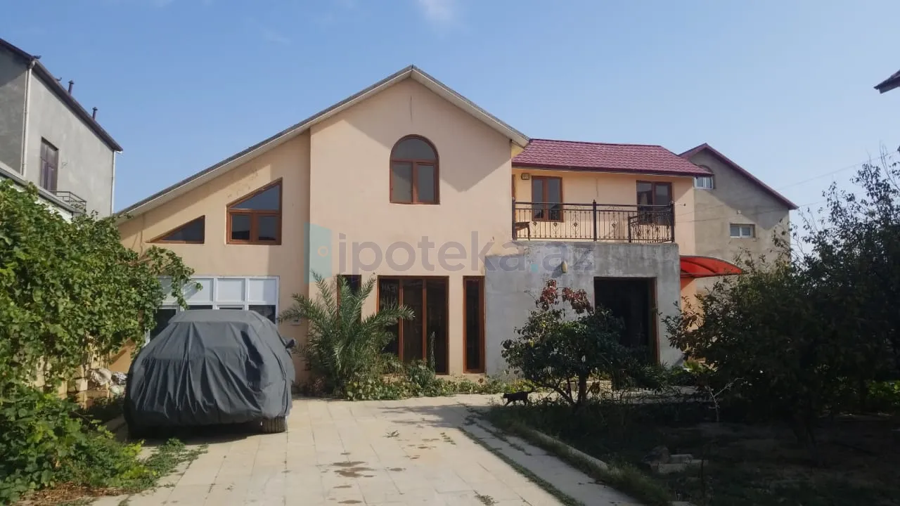 Ev 5 sotun içində yerləşir. 2008-ci ildə tikilib150 kv yaşayış sahəsi və 30 kv qarajı var, yaxşı təmirlidir. Ev keyfiyyətli materiallarla tikilib.Həyətdə 10 tonluq su çəni. Metlağı və xrom pilləkəni qoyulmuş üzmək üçün basseyn, meyvə ağacları var. Ev kombi sistemi ilə qızdırılır. Mətbəxdə və hamamda isti pol var. Yataq otaqlarının birində hamam mövcuddur.Cəmi 2g hamam var .İsti su Aristonladır. Evdə 2 kondisioner və su filtri də qoyulub.Satış zamanı mətbəx mebeli və kondisionerlərdən biri su filtri qalacaq. KUPÇASI OLAN VƏ İPOTEKAYA YARARLI EV SATILIR.