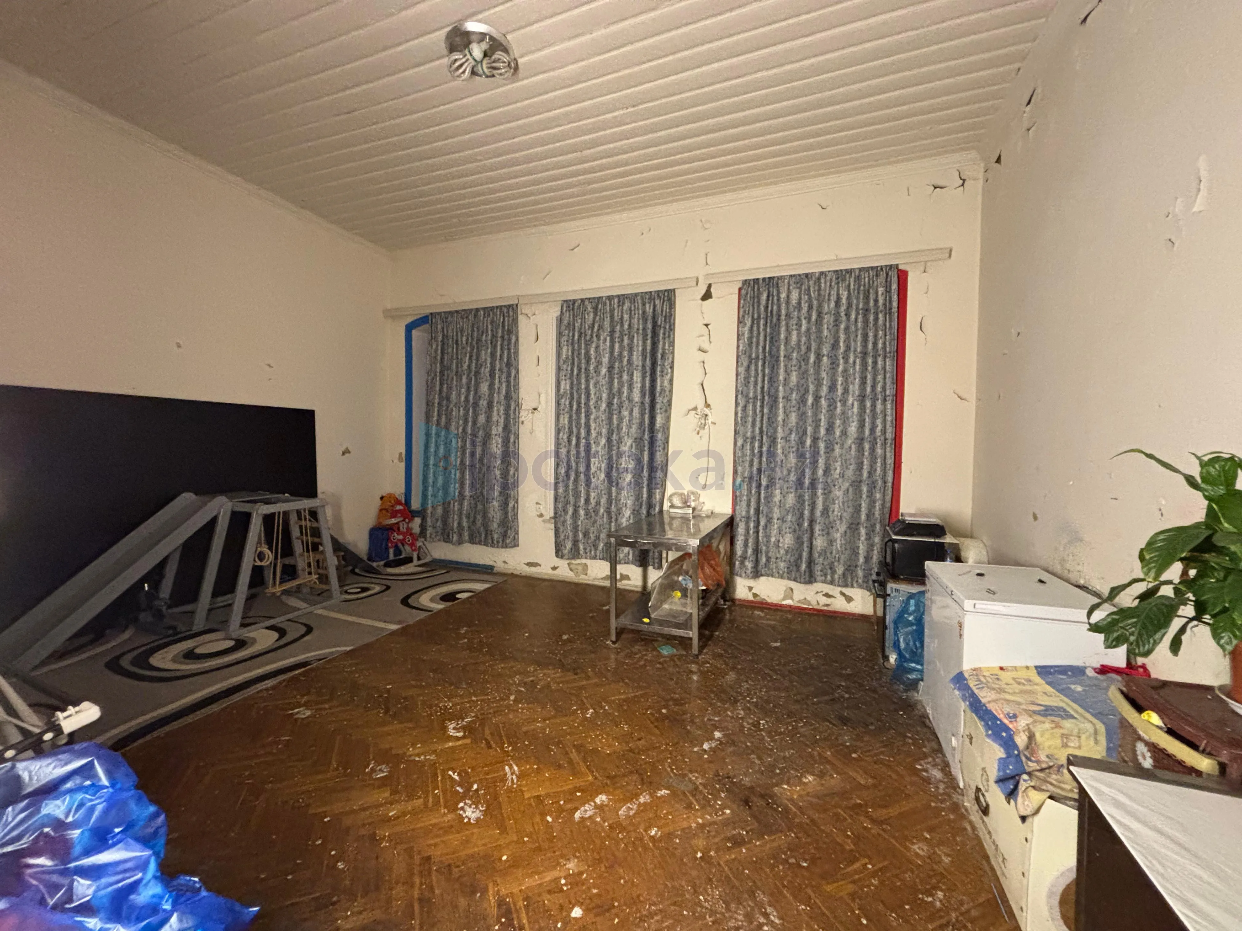Qış parkının yanında, köməkçi küçədə yerləşən, 3 mərtəbəli arxitektur lahiyəli binanın 1-ci mərtəbəsində, ümumi sahəsi 120kv olan, qanuni 3 otaqlı, zəif təmirli mənzil satılır.Sənədi çıxarışdır(KUPÇA).Mənzilin yol kənarına 3 böyük pəncərəsi mövcuddur.Cərgədə bütün mənzillər obyektə çevrilmişdir.