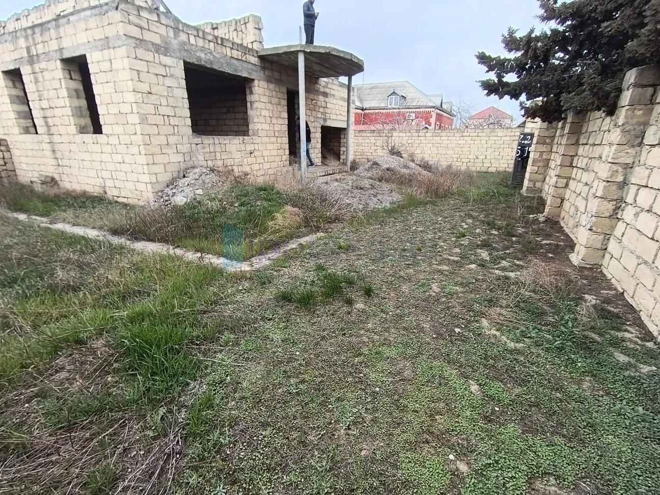 Torpaq sahəsində yarı tikili ev vardır