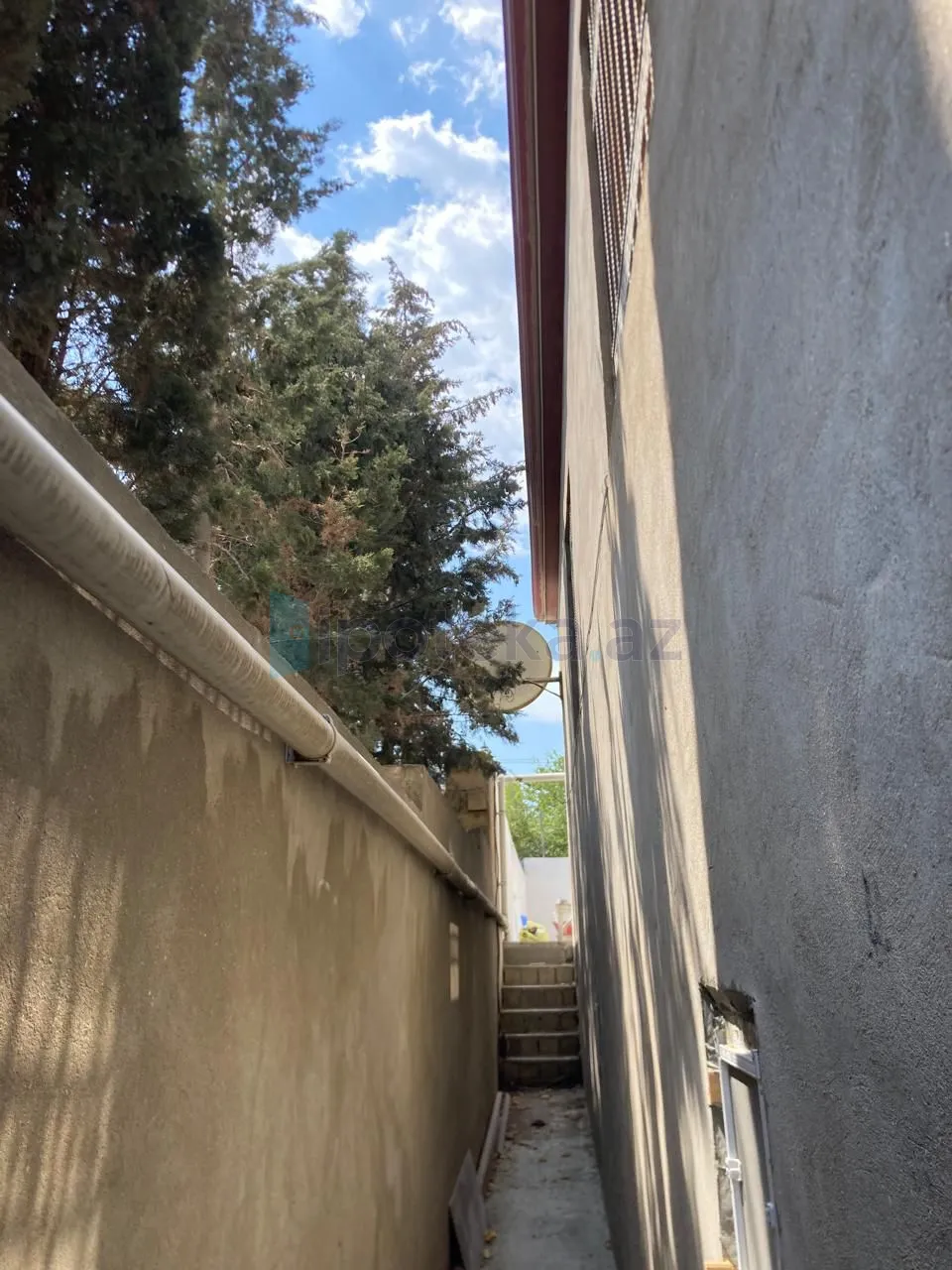 mövcuddur.Evin üzü aqlayla üzlənib.Yerləşməsi hündür